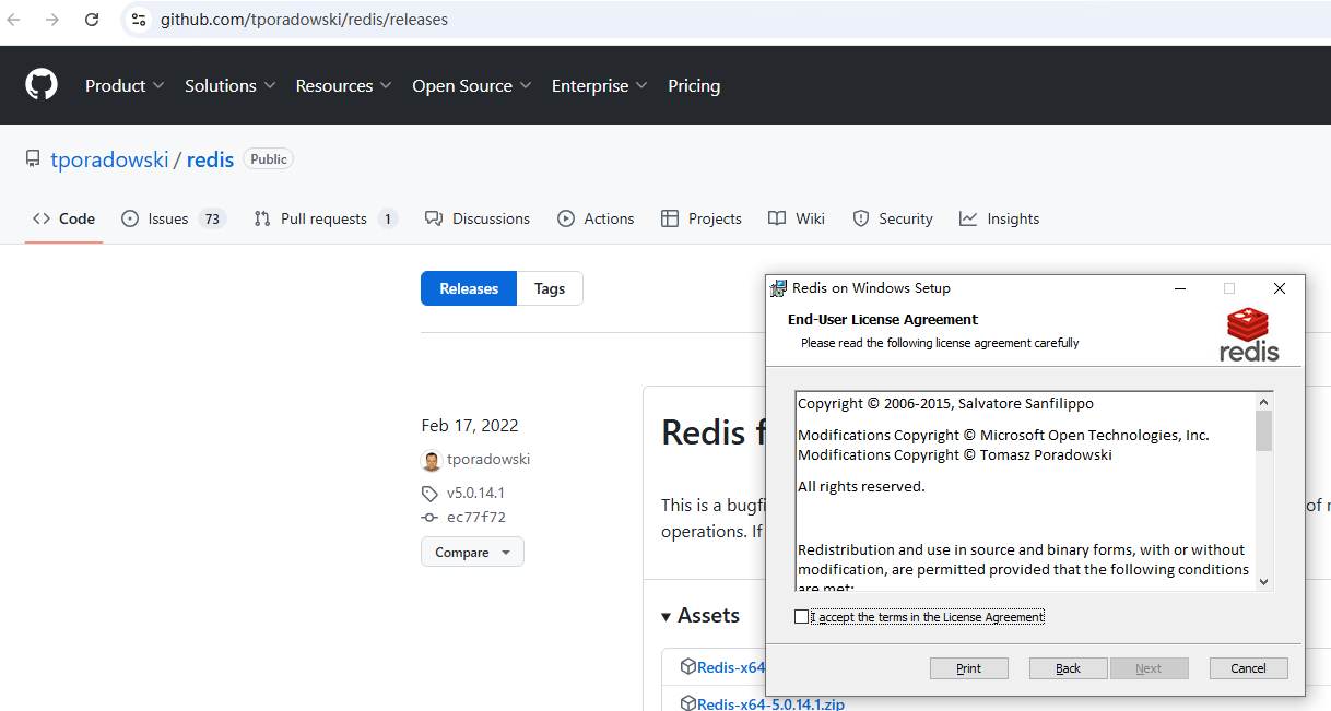 首先安装redis,redis官网在这下载:https://github.com/tporadowski/redis/releases